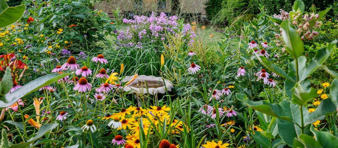 Wasserquelle: Schließen Sie eine flache Wasserquelle wie ein Vogelbad, eine flache Schale mit Kieseln zum Landen oder einen kleinen Teich mit sanften Hängen ein. Pollinatoren benötigen Wasser nicht nur zum Trinken, sondern auch zur Aufrechterhaltung der Luftfeuchtigkeit und zur Regulation der Körpertemperatur.